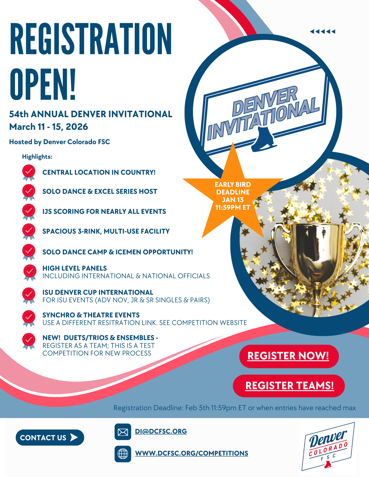 The Denver Colorado Figure Skating Club is a non-profit organization proudly serving the skating community. We are a member-based club and welcome skaters, parents, coaches, officials and friends to join us.